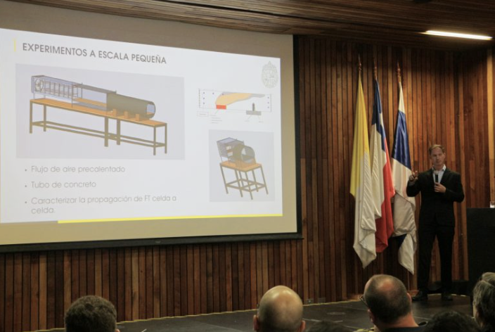 Durante el seminario titulado “Seguridad de baterías de litio en minería subterránea, desafíos y soluciones”, hubo exposiciones de académicos invitados, como José Torero- académico de la University College of London- y Rodrigo Caro- Ingeniero militar y PhD de la Universidad de Cranfield en UK-, quienes le dieron paso a la investigación desarrollada por Wolfram Jahn, profesor asociado de la Escuela de Ingeniería UC, quien mostró sus avances en las simulaciones en torno a los riesgos de utilizar baterías de litio en la minería subterránea.